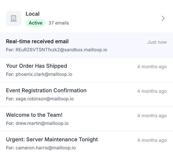 waitFor lets developers block until a specific email arrives. If you’re testing a password reset flow, you trigger the reset, then call waitFor({ to: "[email protected]" }) and it resolves when the email shows up. No polling loops, no arbitrary delays, no flaky CI. The event system means there’s no polling on the server side either. The email arrives, an event fires, the waiting SDK client gets notified.